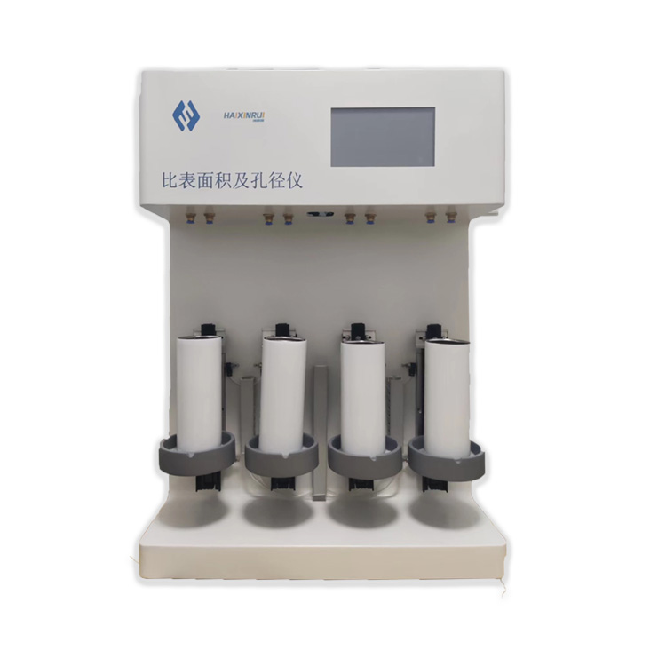 比表面積分析儀,采用Nelsen和Eggertsen提出的連續(xù)流動法(標樣比對法)作為測定方法,在低溫液氮作用下,氦氮混合氣連續(xù)通入樣品管,混合氣中的氮氣被樣品開始吸附至飽和的過程出現(xiàn)吸附信號,然后脫離液氮環(huán)境,在升溫的過程中被吸附的氮氣開始脫附至完全脫附的過程中出現(xiàn)脫附信號。詳細原理可參考國標GBT19587。此類儀器特別適合生產(chǎn)型企業(yè)產(chǎn)品品控,快速獲取材料“比表面積”參數(shù)。